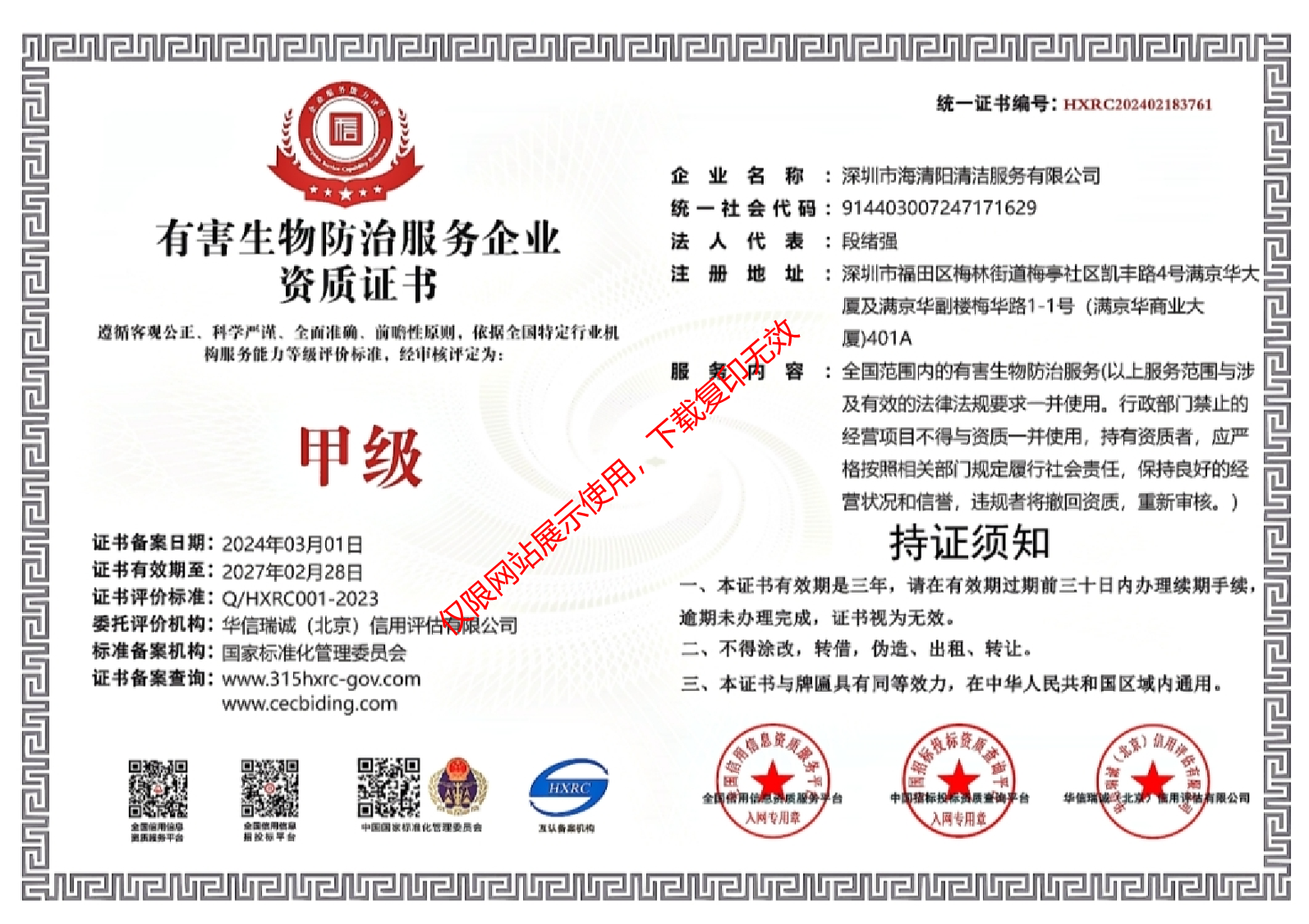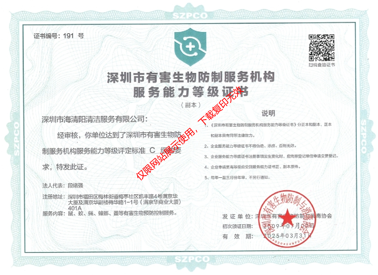 深圳市有害生物防治服務(wù)能力等級(jí)證書(shū)