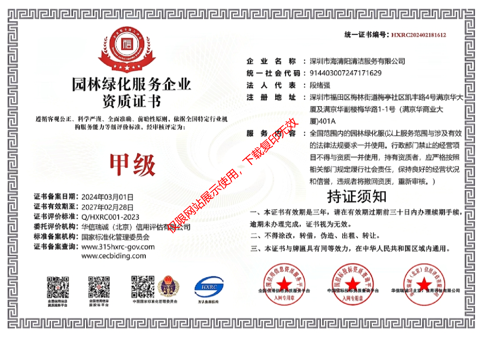 園林綠化服務(wù)企業(yè)資格等級(jí)證書(shū)(甲級(jí))